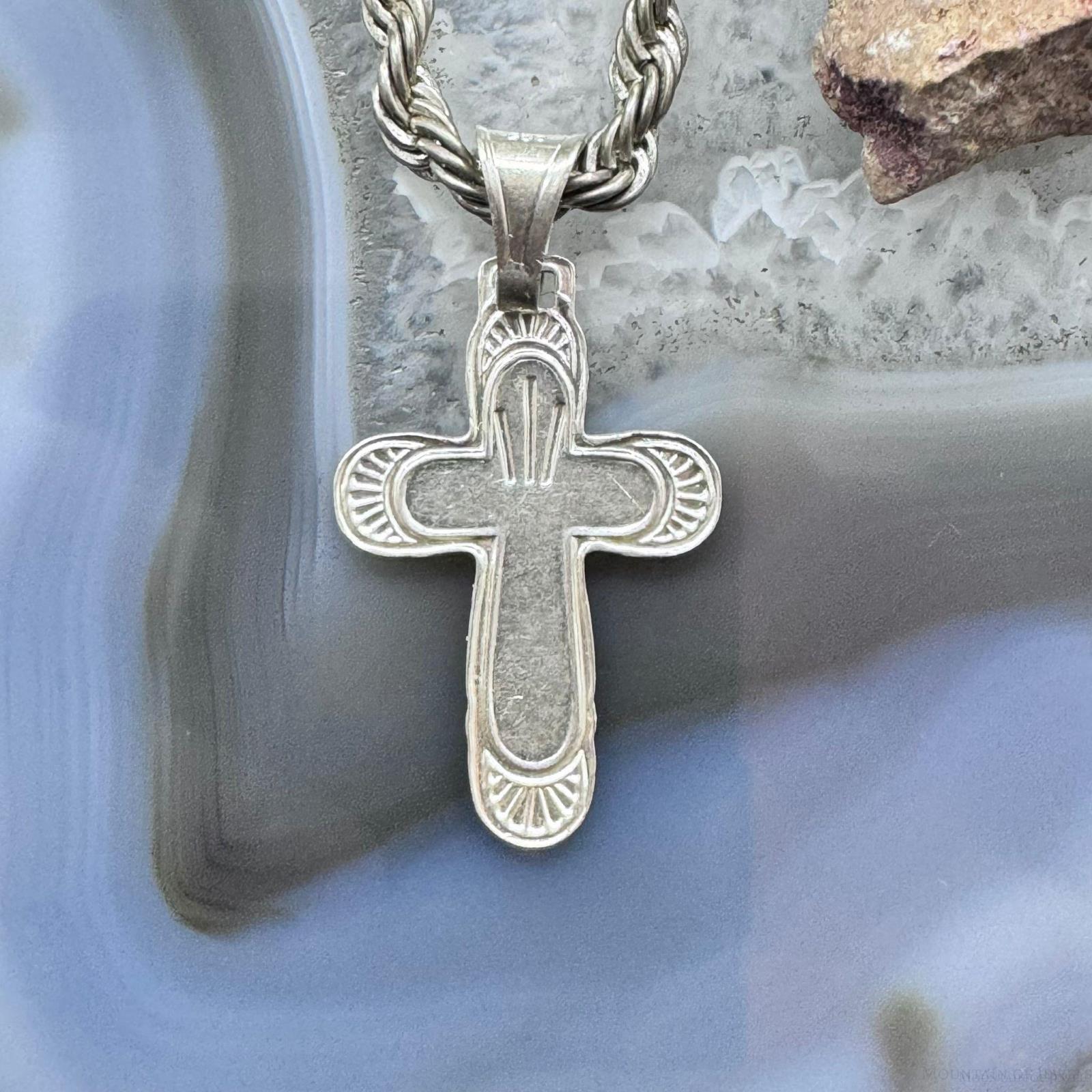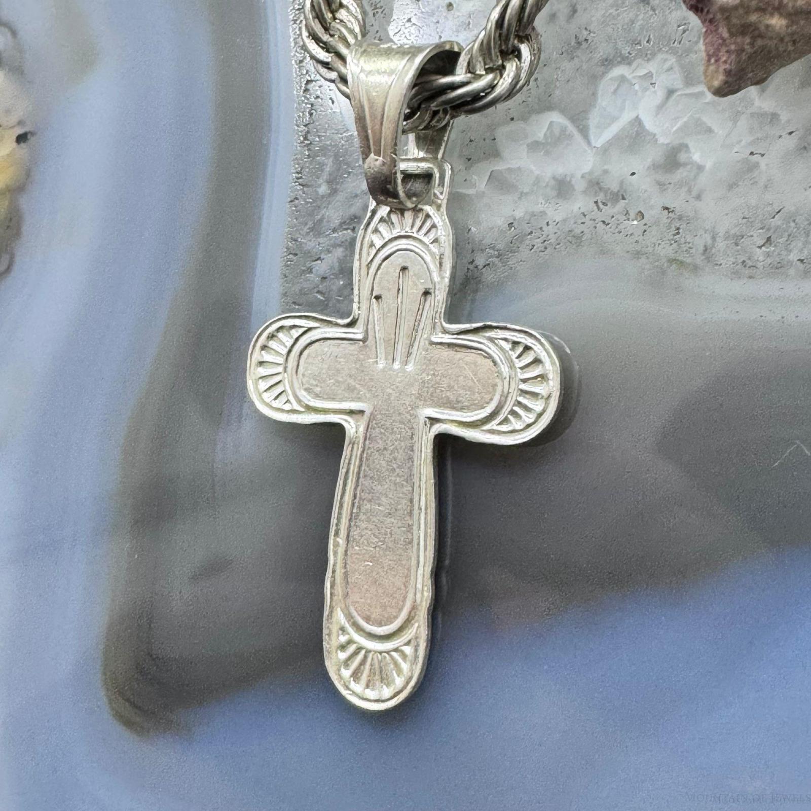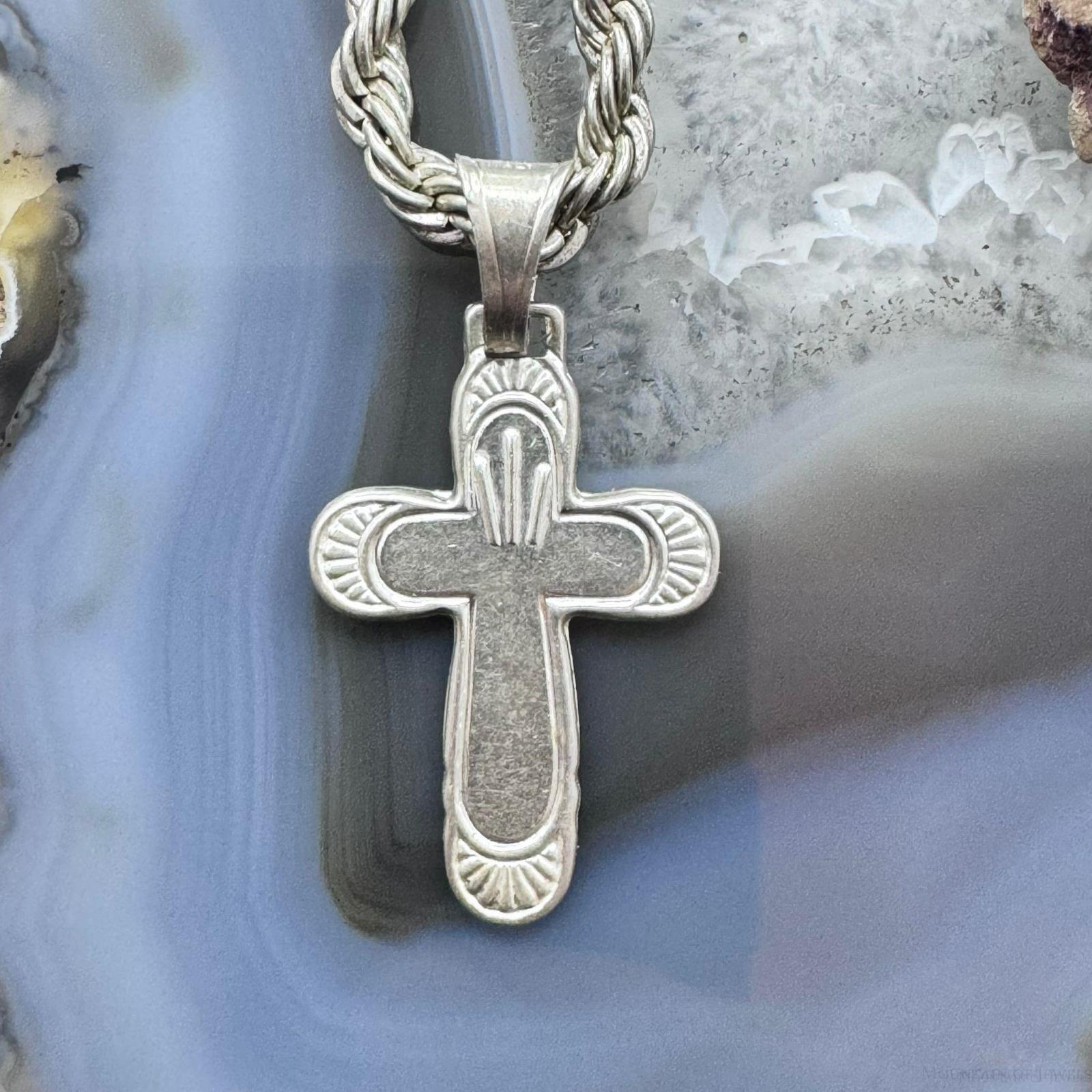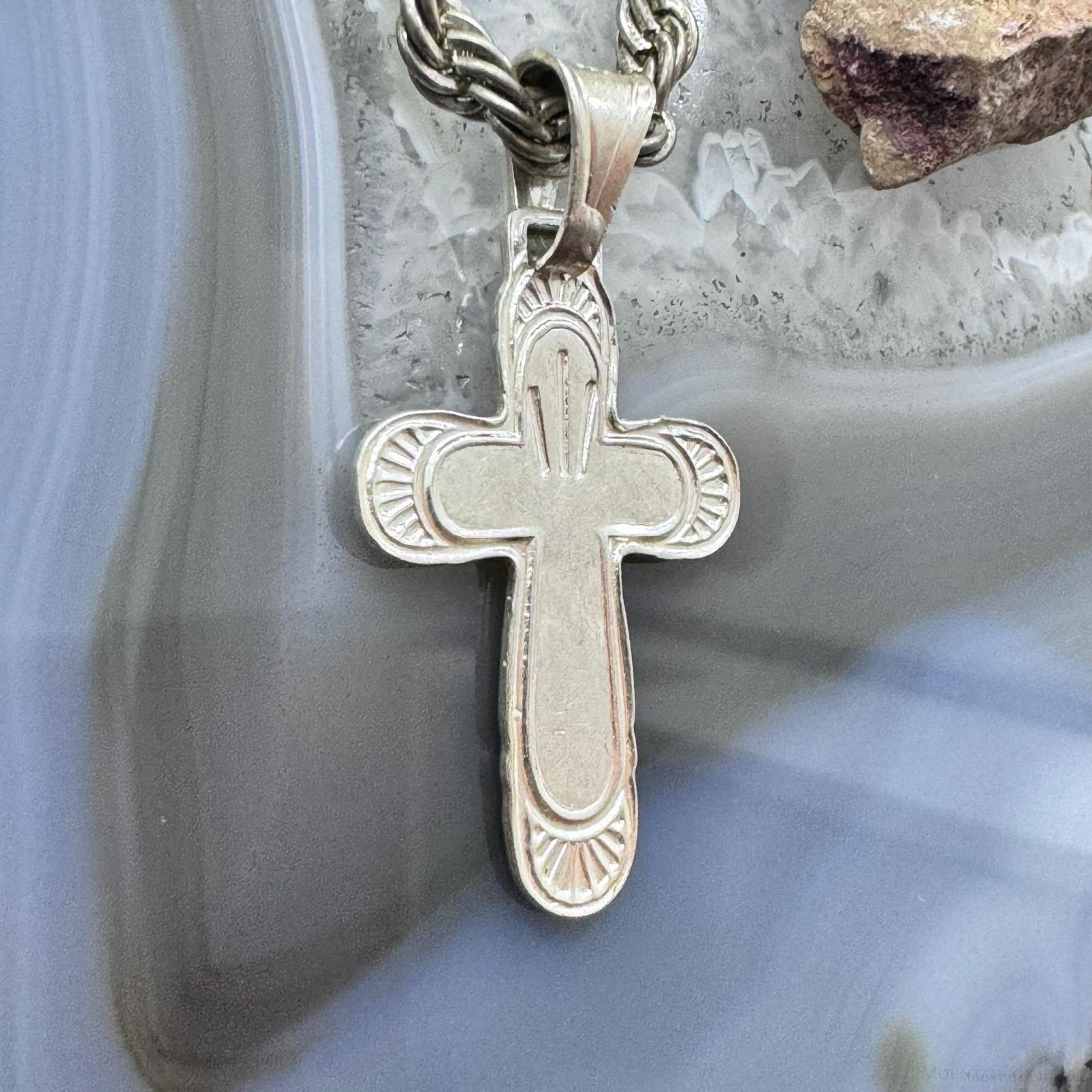 Vintage Sterling Silver Unisex Cross Pendant With 23" Rope Chain Necklace