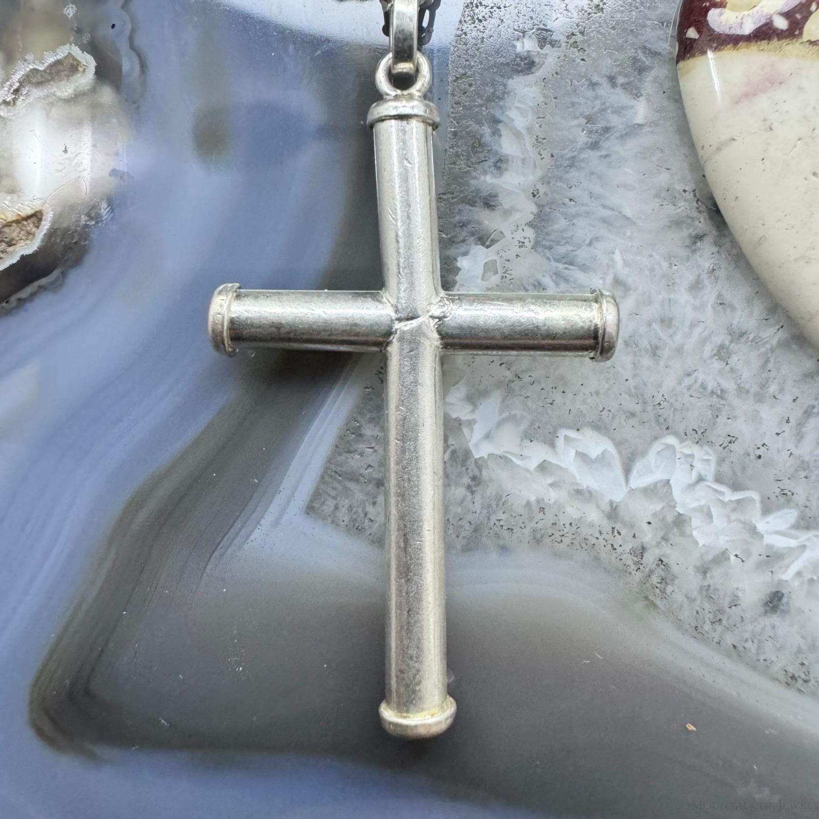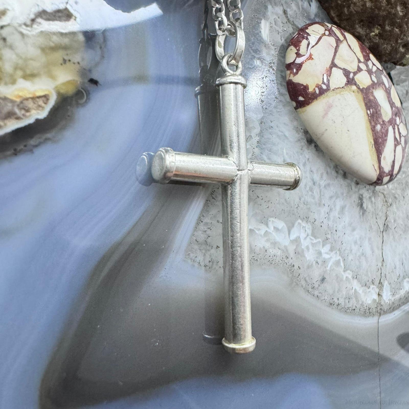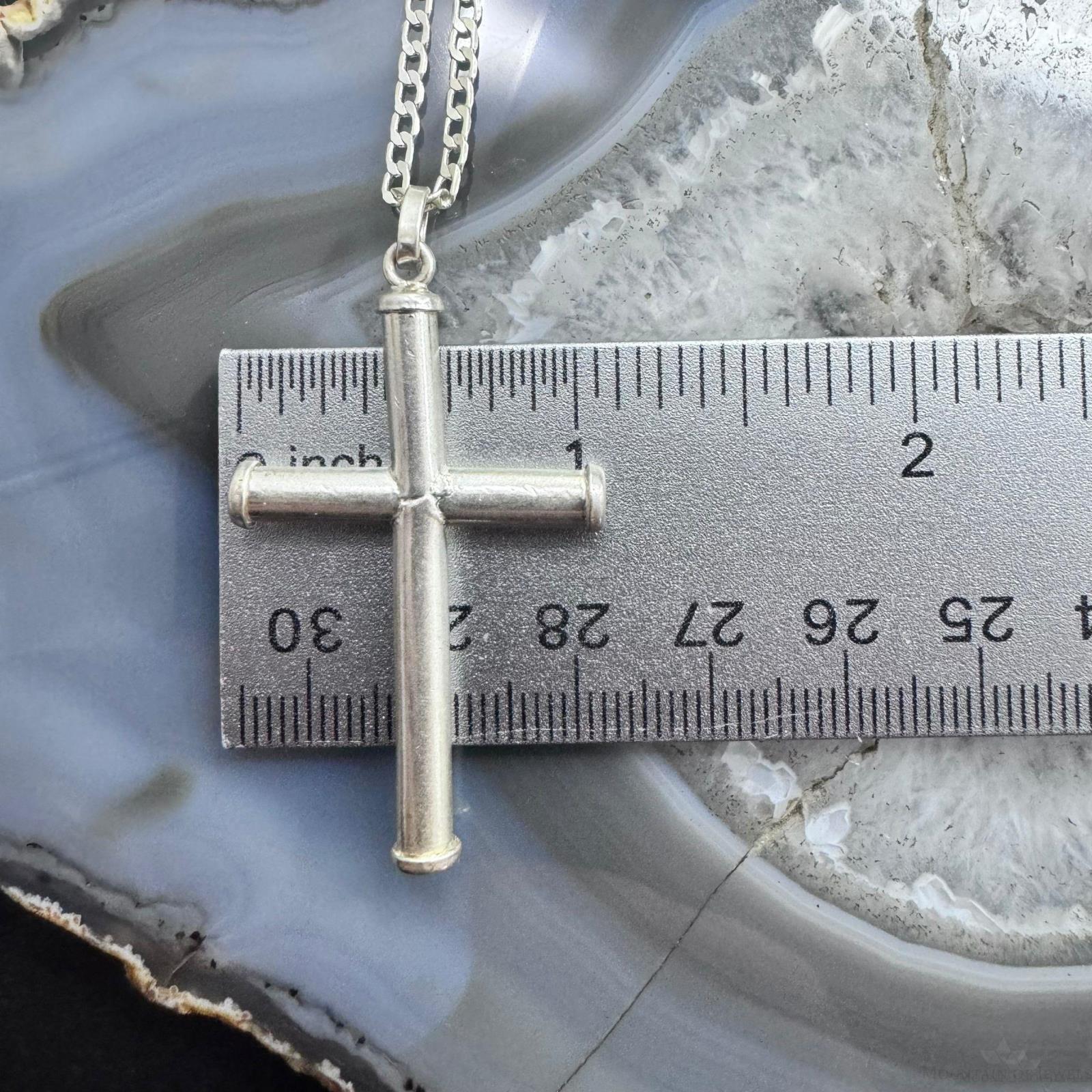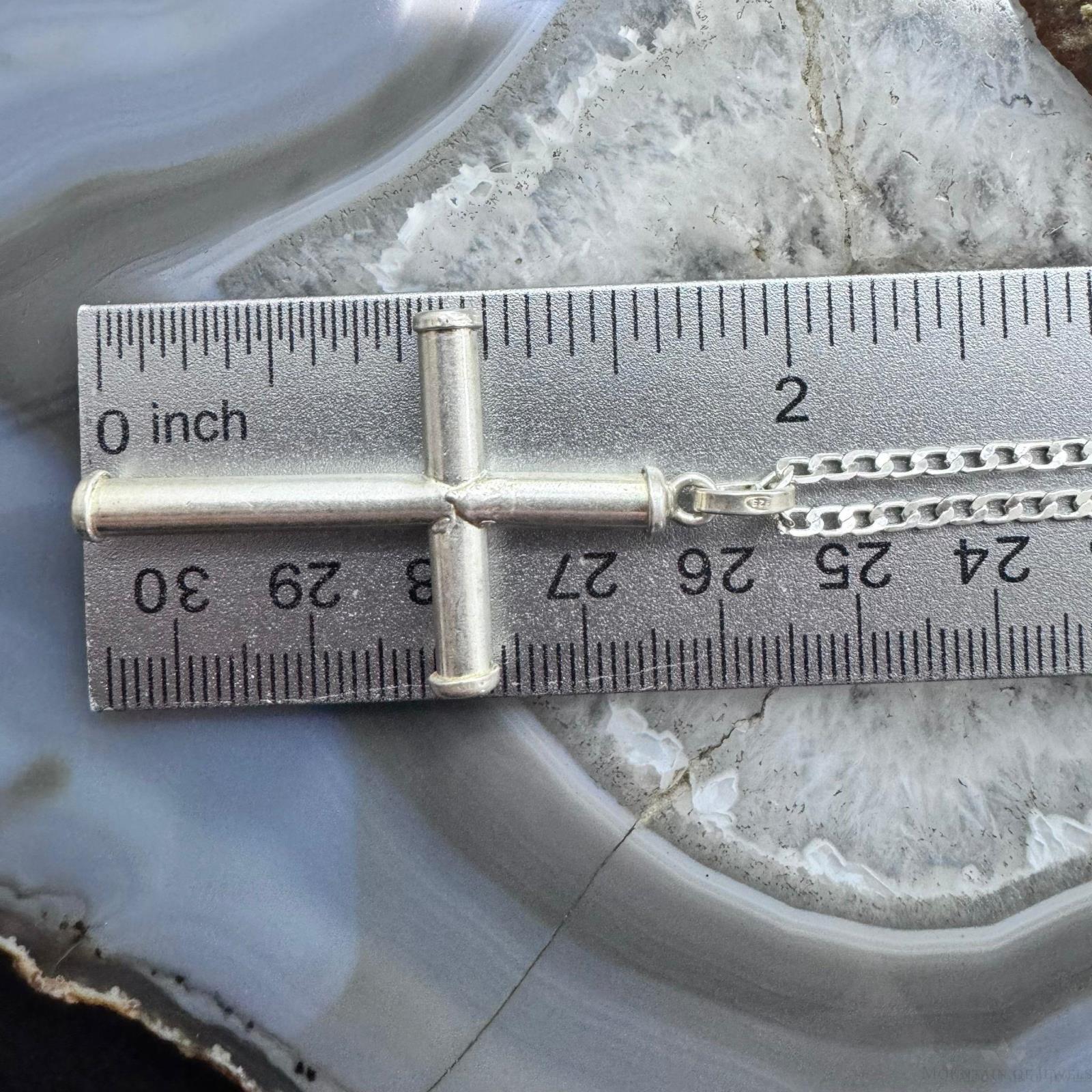 Vintage Sterling Silver Unisex Cross Pendant With 24" Link Chain Necklace