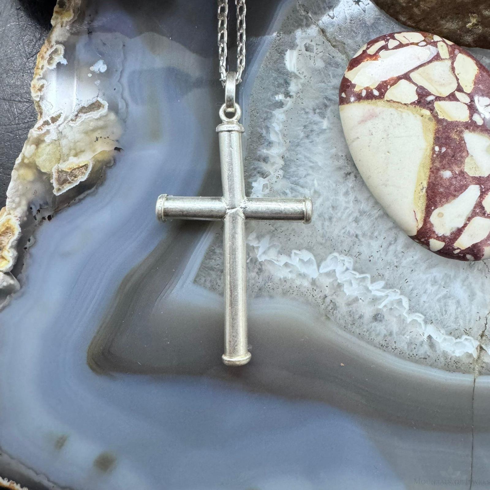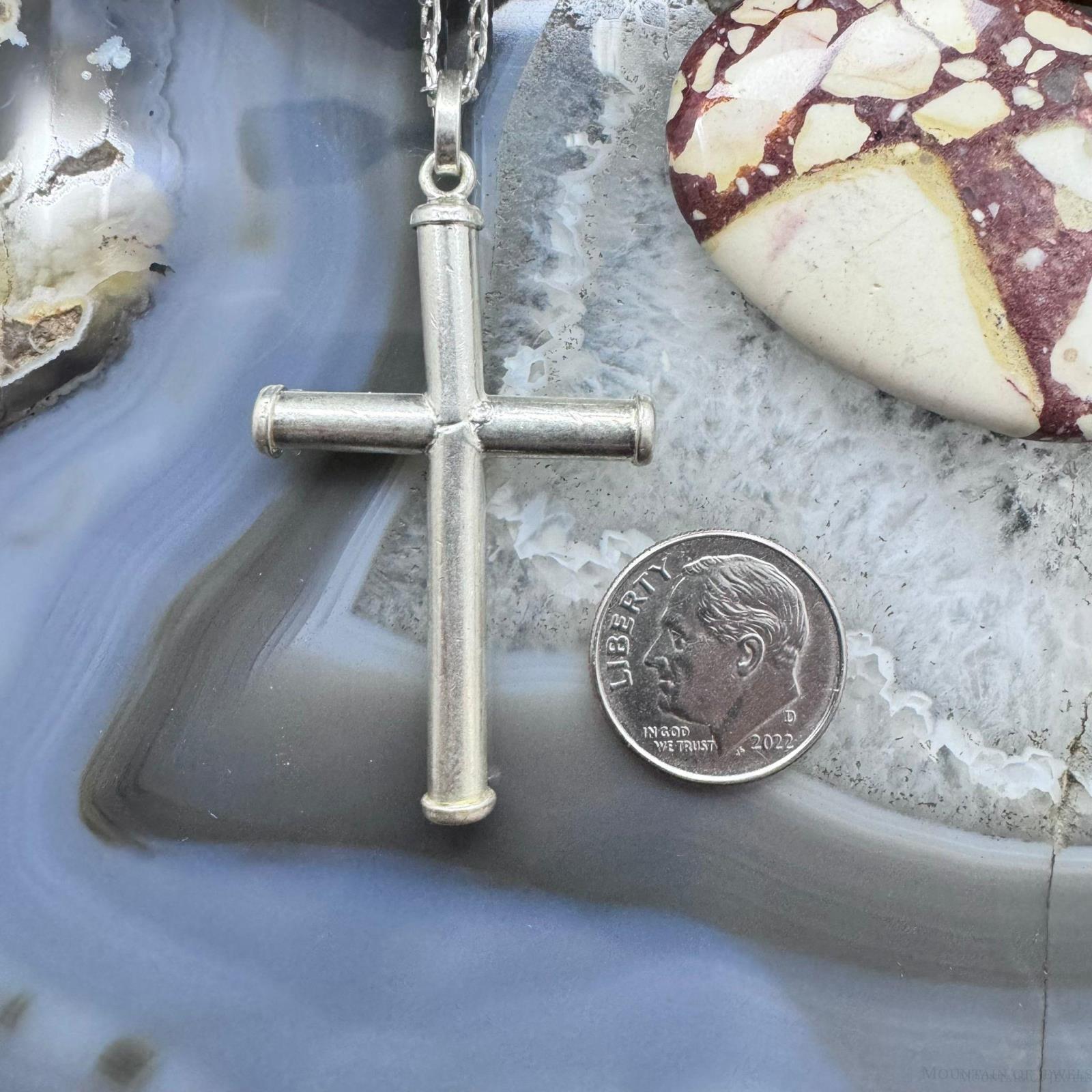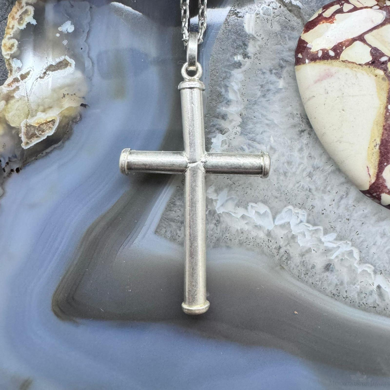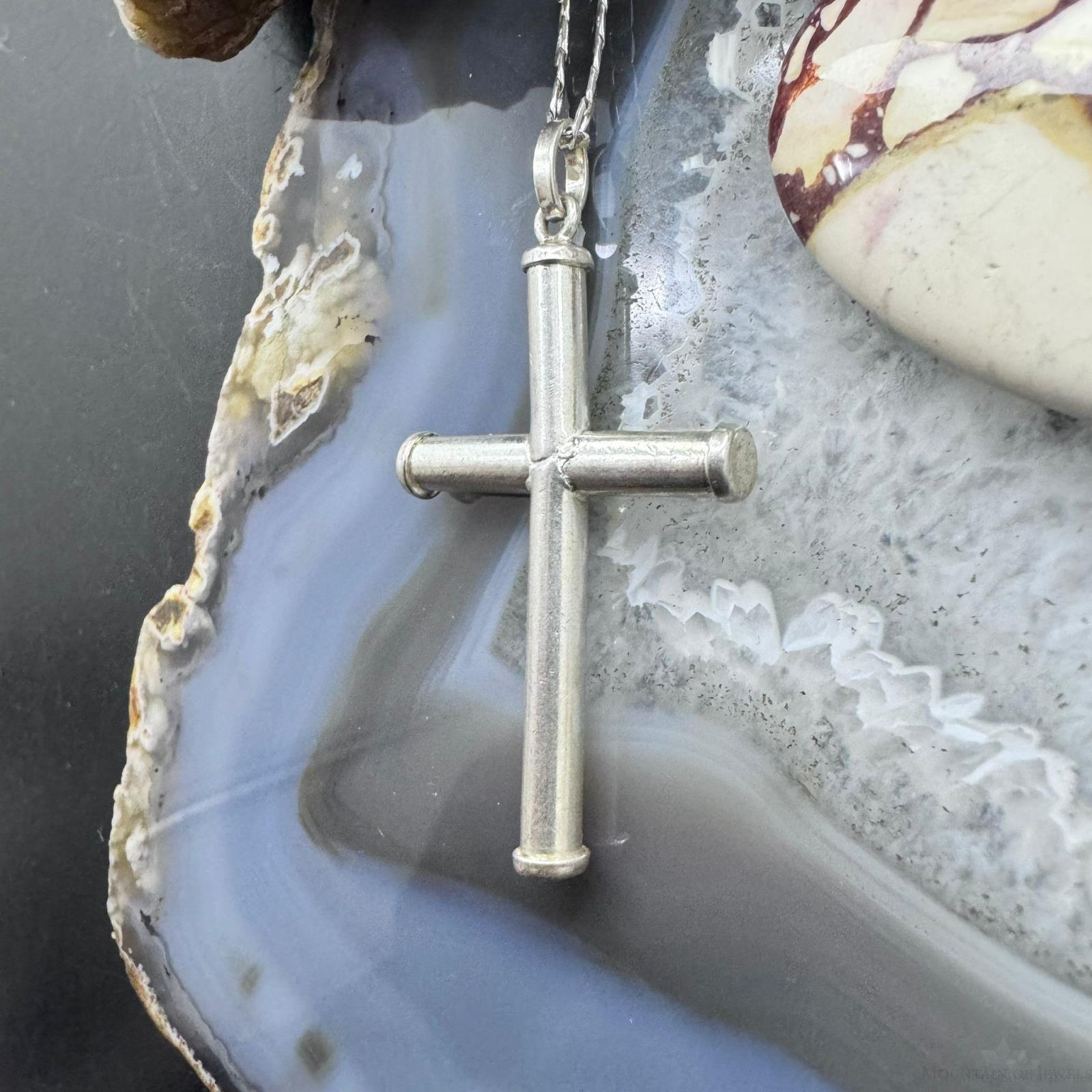 Vintage Sterling Silver Unisex Cross Pendant With 24" Link Chain Necklace